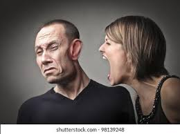 The wife is furious. She yells at him,